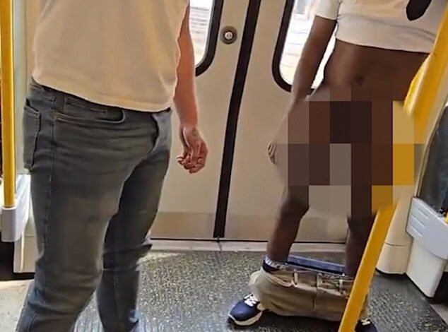 Los viajeros furiosos han encendido un pasajero que dejó caer sus pantalones en un carro de tubo lleno con niños…