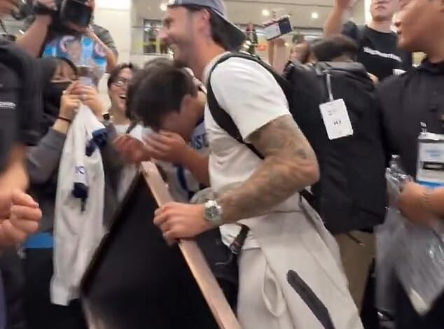 La vista de James Maddison era demasiado para manejar para un fanático del Tottenham de Corea del Sur mientras los Spurs aterrizaban en el país