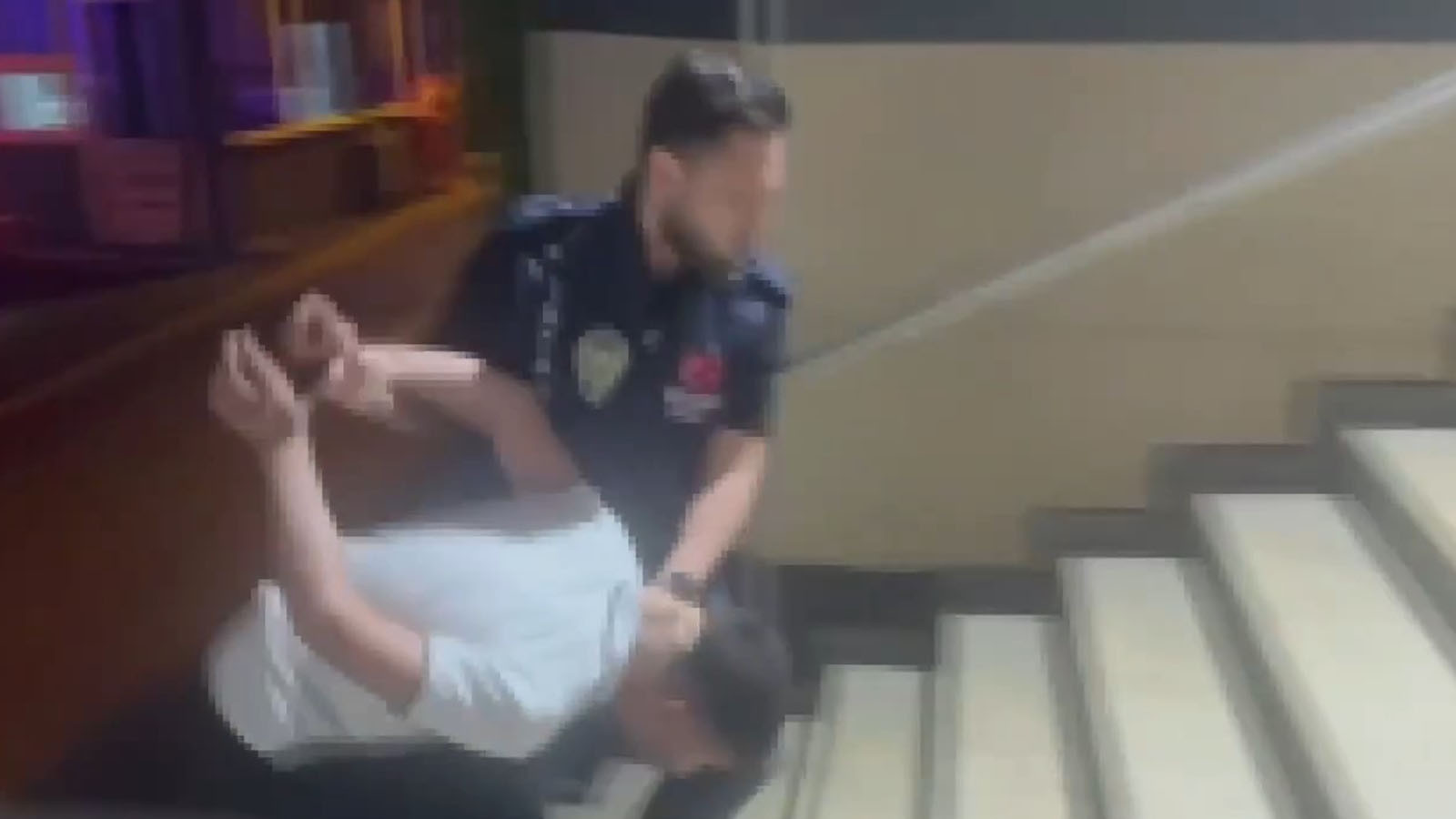 Se vio a la policía trayendo a la mujer al suelo