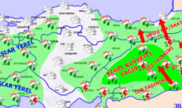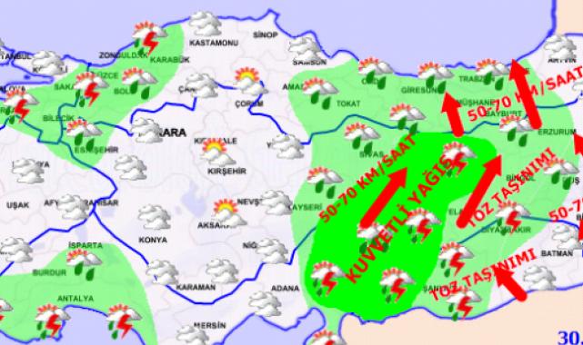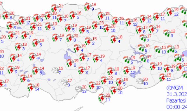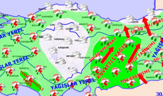 El sábado 30 de marzo, el primer día de la fiesta, el país está cortado y está muy nublado, Kırıkkale, Yozgat, çankırı, Kırşehir y las provincias de Çorum y Kastamonu y las secciones costeras de todas las regiones fuera de las partes costeras de las intermedentes y tormentas de thingsters se esperan.
