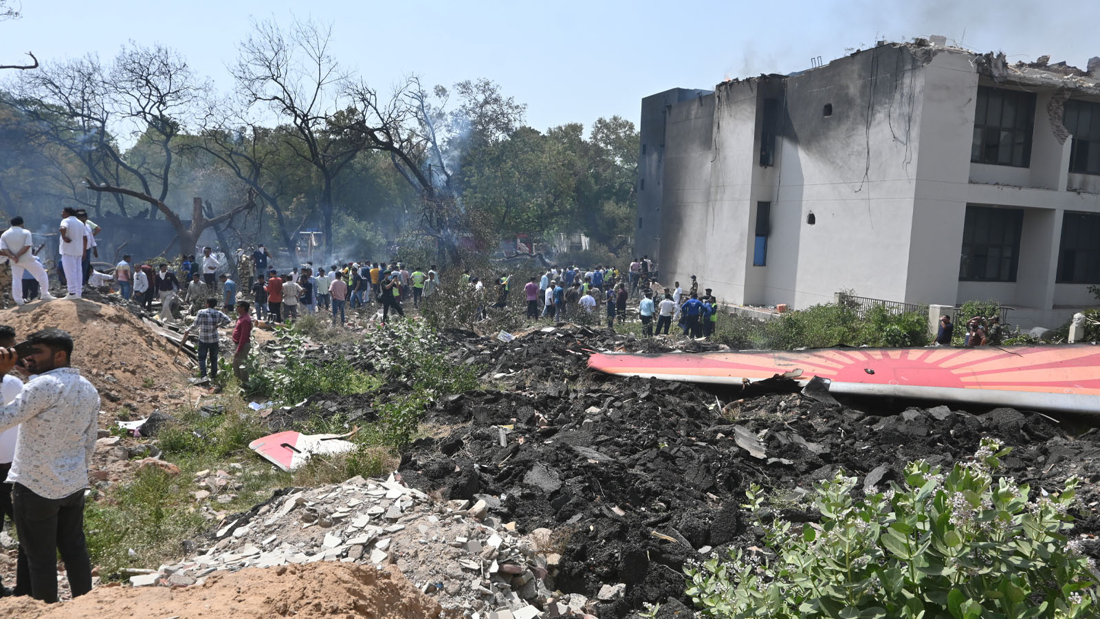 Imágenes en las redes sociales de la región, el intenso humo negro en el aire, el avión estrelló a Meghani Nagar, la quema de edificios y vehículos en el asentamiento llamó la atención.