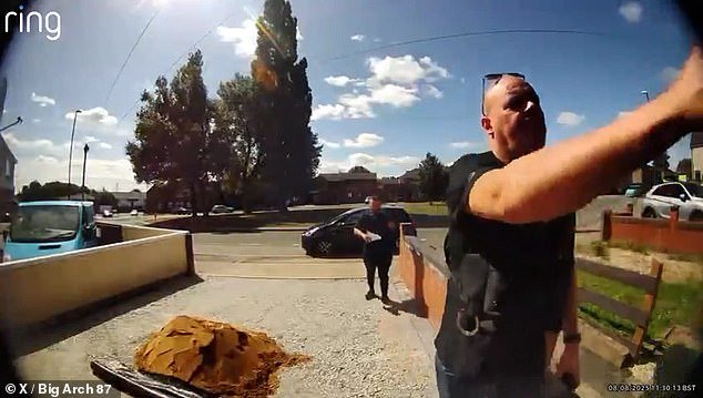 Momento avergonzado El oficial de policía llama a la puerta del manifestante ‘antimigrante’ después de que le envían a la puerta a la policía a la policía ‘lamentable’ antes de las manifestaciones